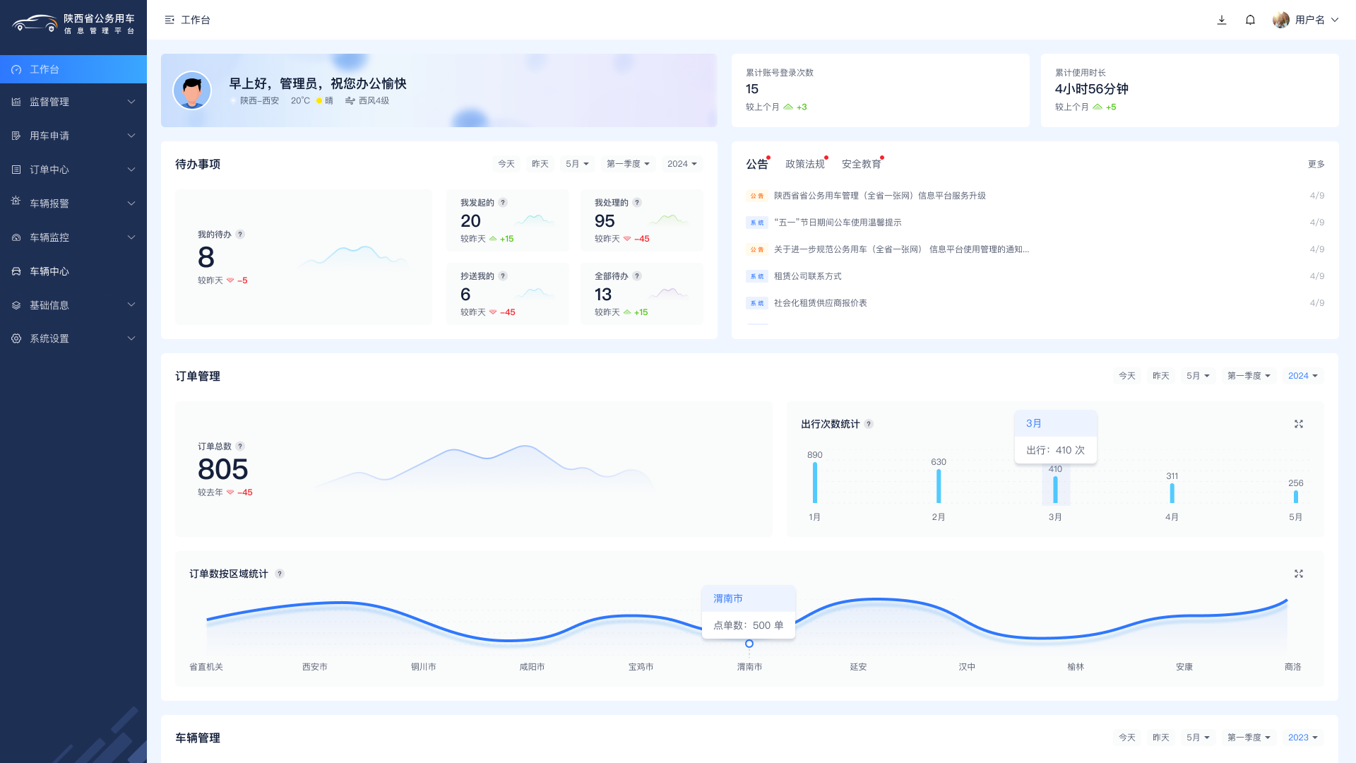 公務(wù)用車管理系統(tǒng)采用北斗定位、云計(jì)算、物聯(lián)網(wǎng)、大數(shù)據(jù)等新一代技術(shù),以信息化為手段、以數(shù)字化為載體、智慧化為目標(biāo),實(shí)現(xiàn)對(duì)公務(wù)車輛全程信息化管理。系統(tǒng)秉承“全省一張網(wǎng)、治理一盤棋”的規(guī)劃理念,旨在以一張網(wǎng)聯(lián)通省、市、區(qū)縣三級(jí)政府部門公車信息,讓公務(wù)出行更規(guī)范、更便捷,并致力于將其打造成為國(guó)內(nèi)公務(wù)用車信息化管理領(lǐng)域的知名品牌。目前,易迅通公務(wù)用車管理系統(tǒng)已覆蓋陜西、甘肅、山西、寧夏、新疆、河北、河南、海南、湖南等省份,累計(jì)服務(wù)客戶超十萬家。